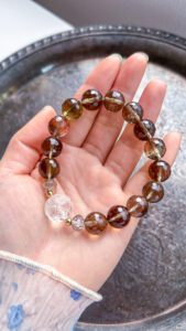 スモーキークォーツ 手彫り 蓮水晶 ブレスレット パワーストーン