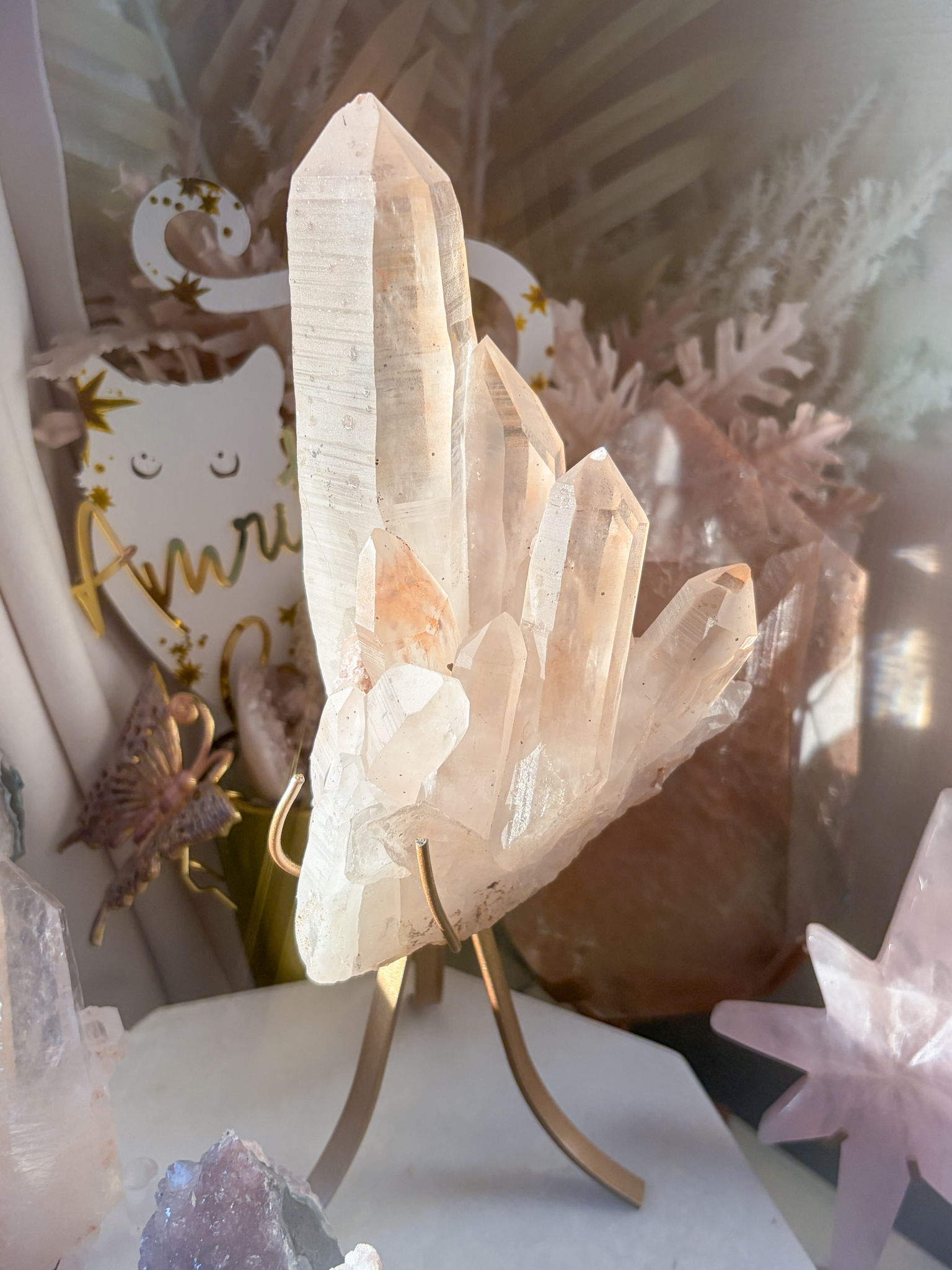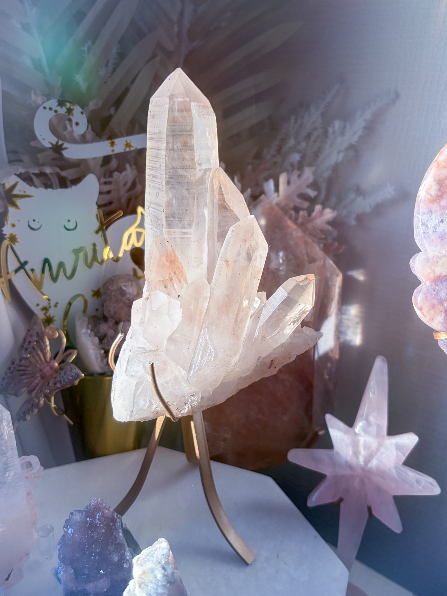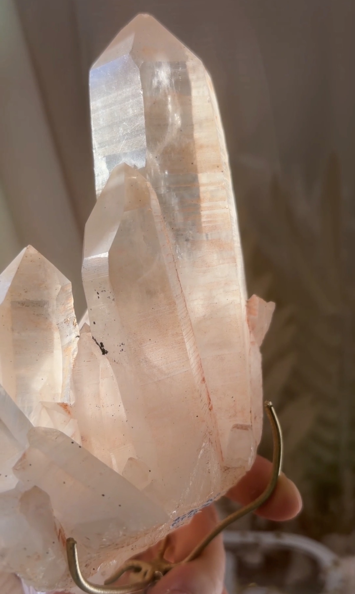 カブラル鉱山は現在ほぼ閉山しているため、極めて貴重なレアピースです。ポイントには、レムリアの叡智を宿すくっきりとしたリッジ(条線)が深く刻まれています。ブラジル産のクリスタル買い付けの際にたまたま手に入ったピースの一つです