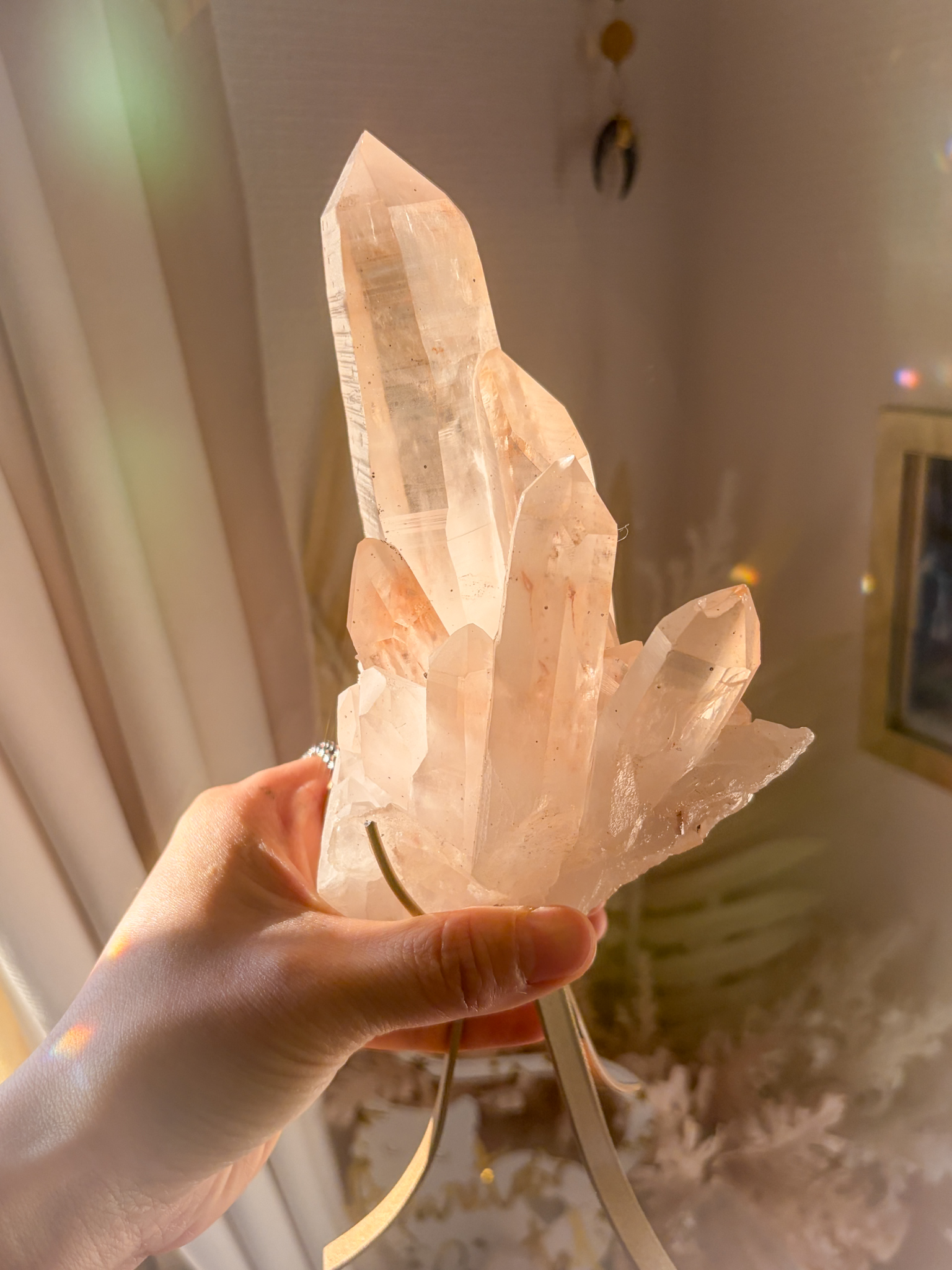 <スピリチュアル効果> 心と体の疲れを癒し、倦怠感や疲労を緩和 古代レムリア文明の叡智とのつながり 高次元の意識とのアクセス、軽やかで自由な人生の創造 自己受容と心の安定、孤独感や不安の緩和 セラデカブラル産は年々採掘量が激減しており、手に入るのは本当に稀なコレクションピースです。 こちらはブラジル産クリスタルの買い付けの際にたまたま入ってきたピースの一つです。 ヒーラーやライトワーカー、スピリチュアルワークにこだわる方に特におすすめの一品です。