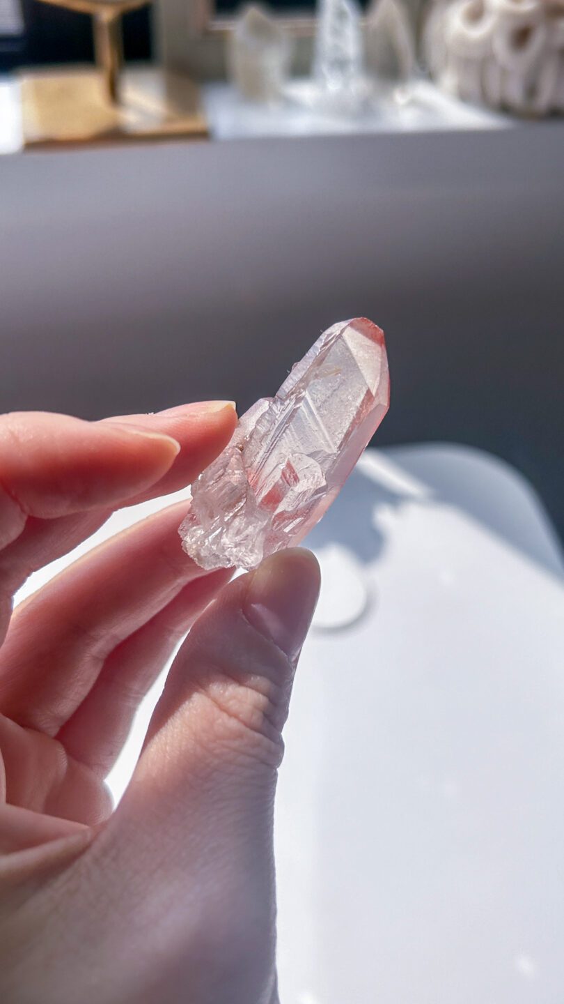 水晶の成長線が入っていることや、透明〜赤みを帯びたもの(鉄分)が「レムリアンらしい」特徴です。