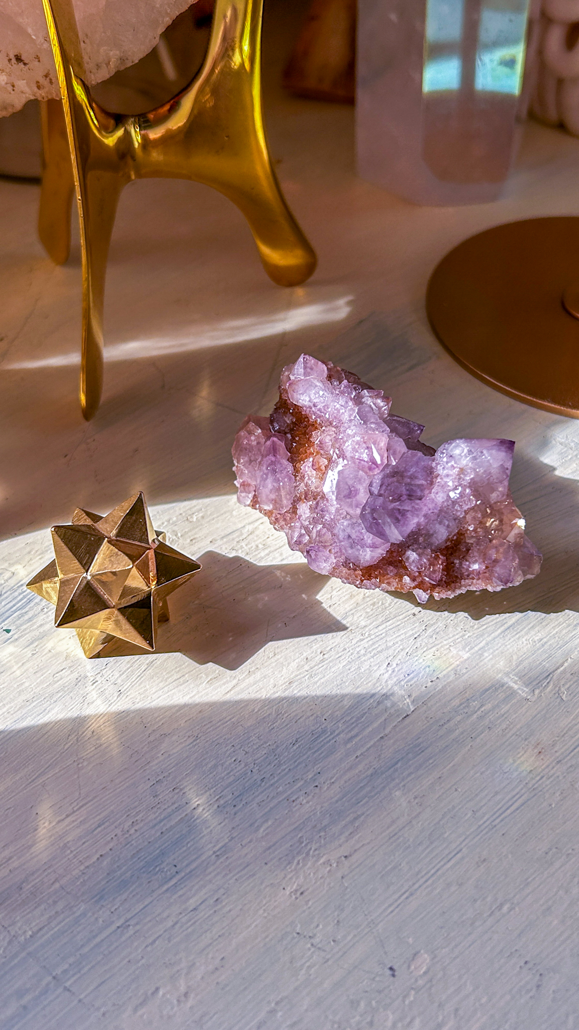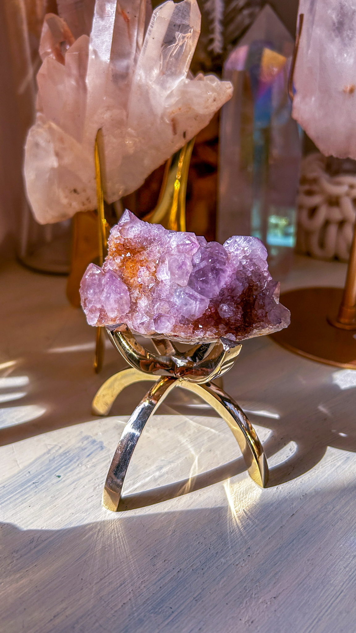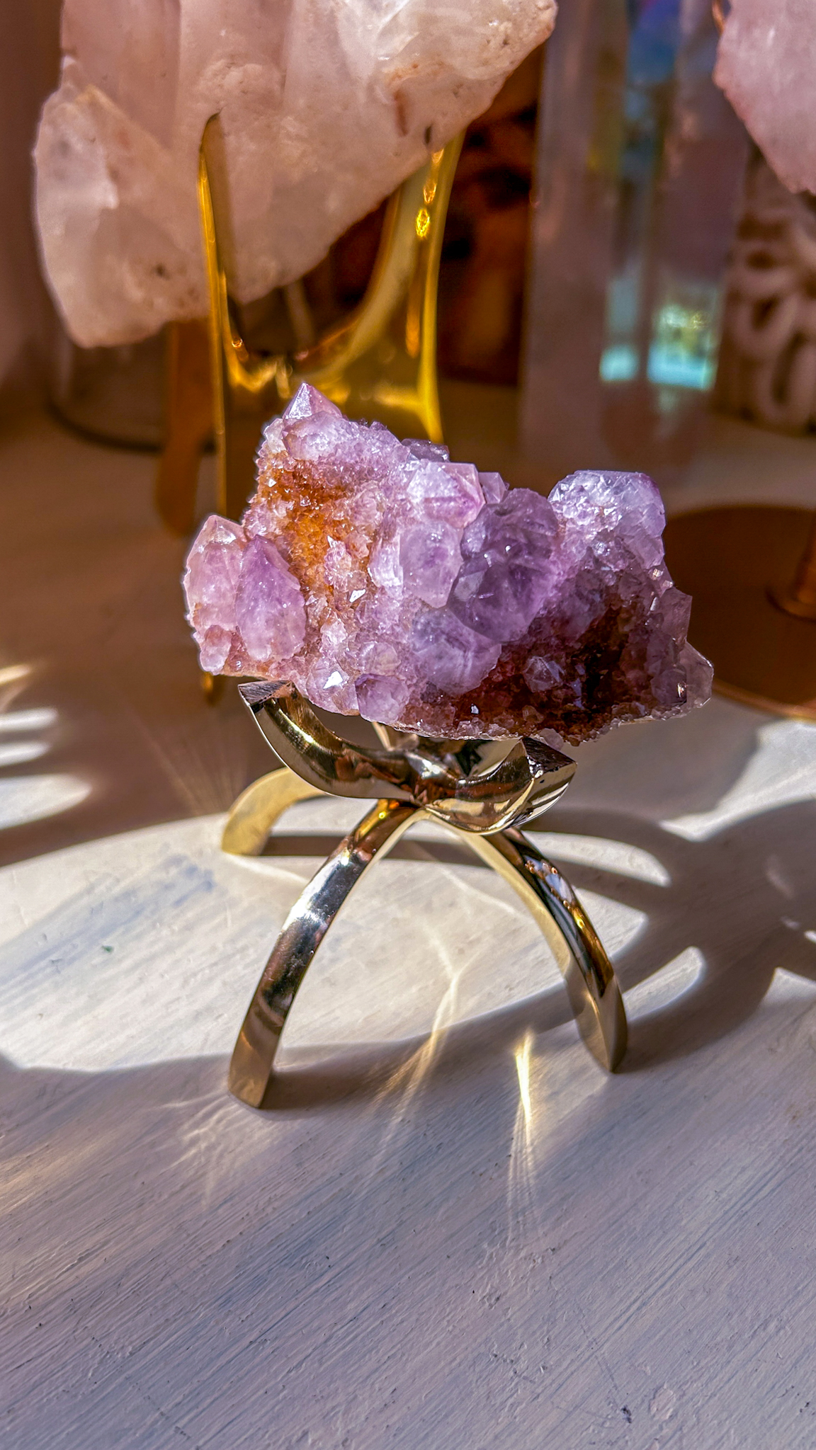 このスピリットアメジストは、珍しい南アフリカ産地より届いたスペシャルなクラスター。写真では濃く写ったのですが、肉眼だともう少し淡い色合いです。