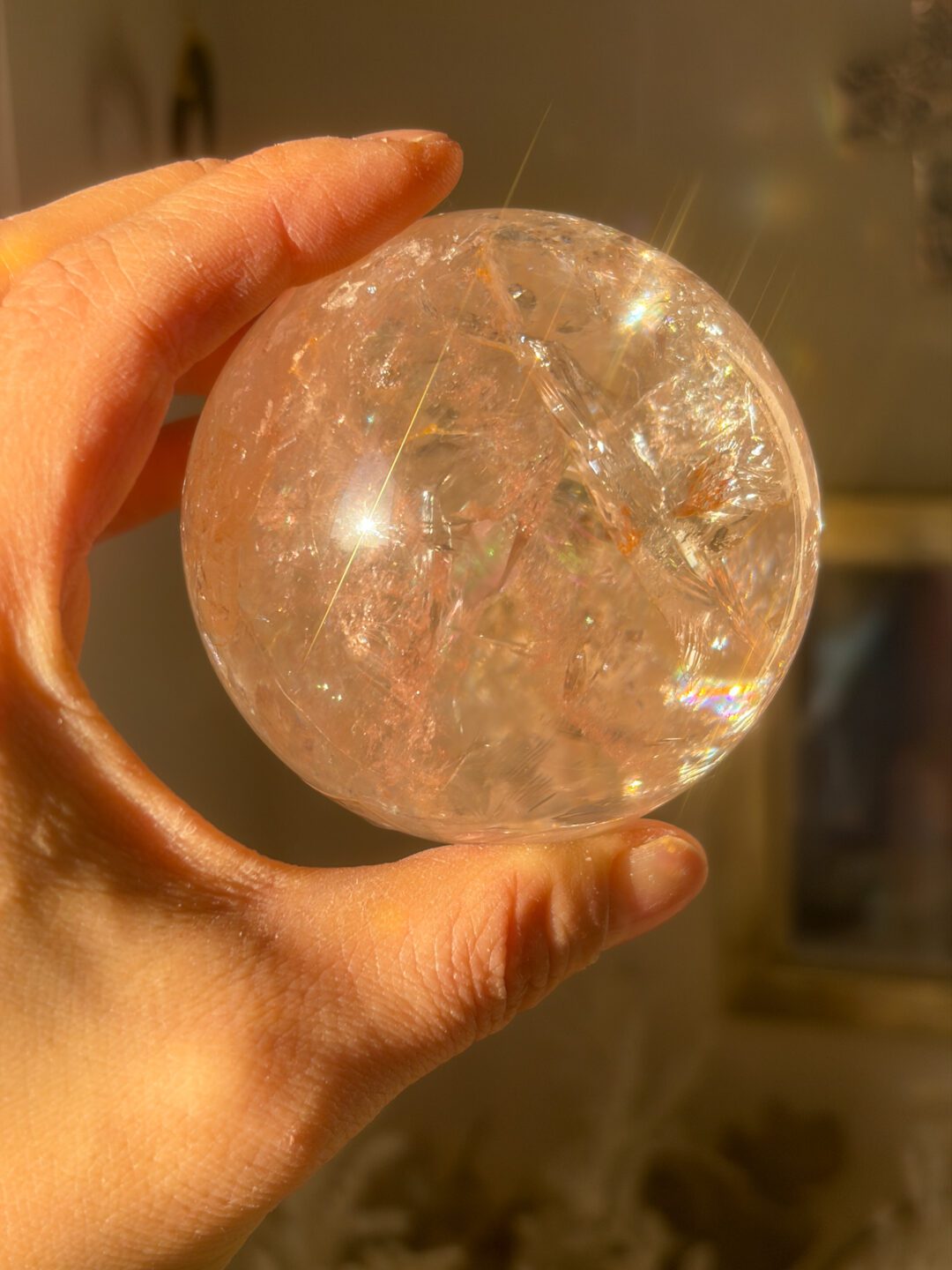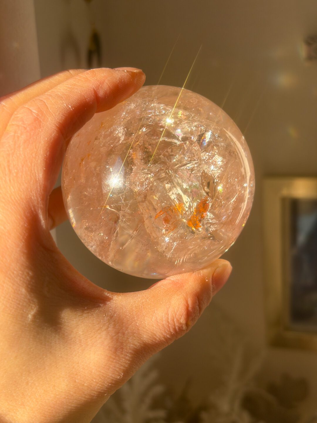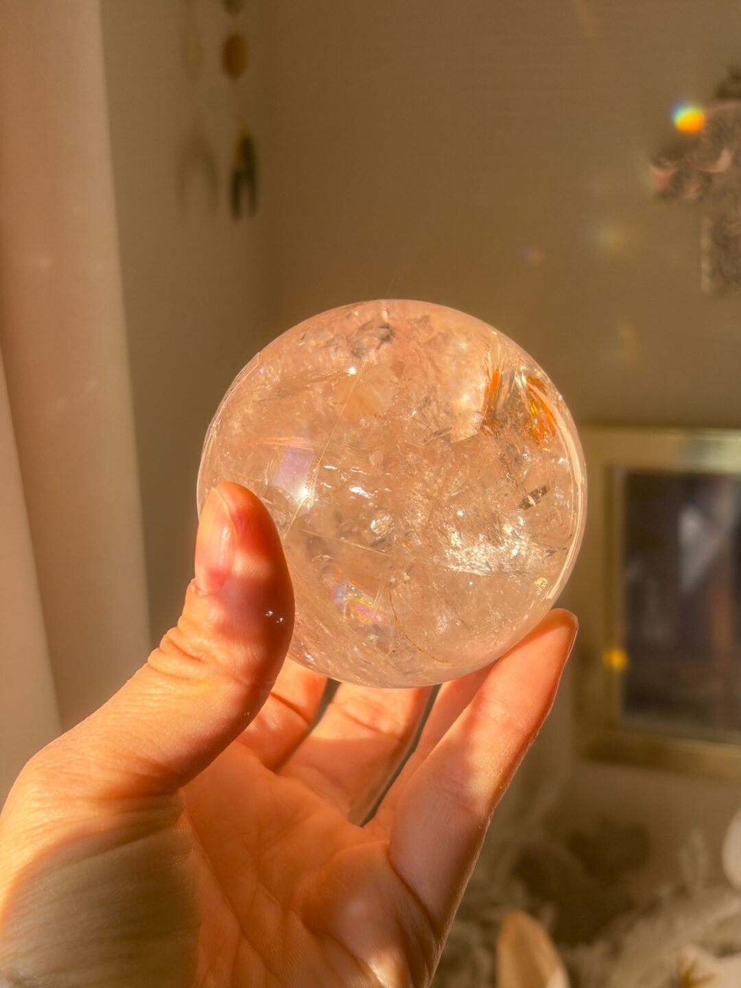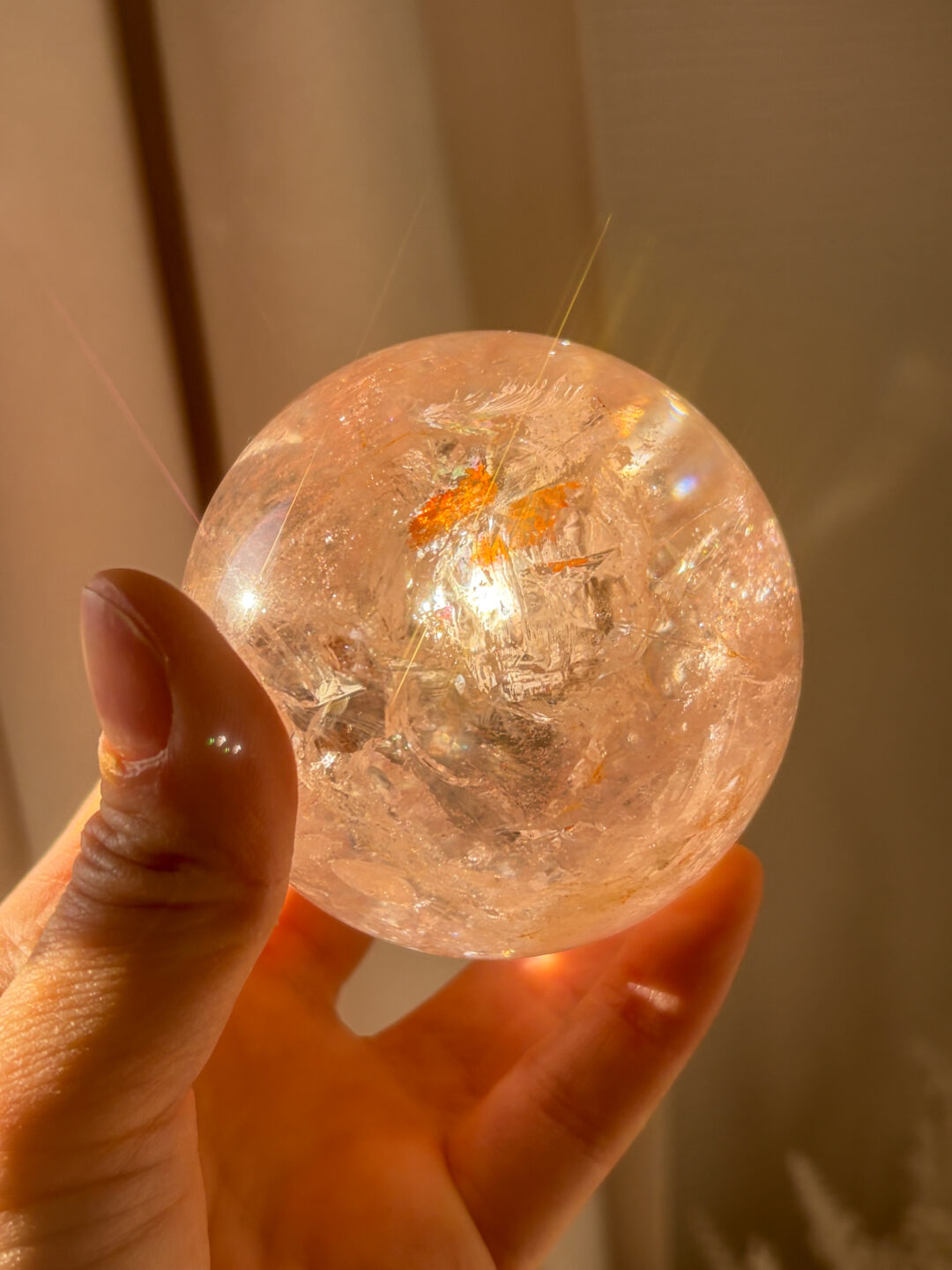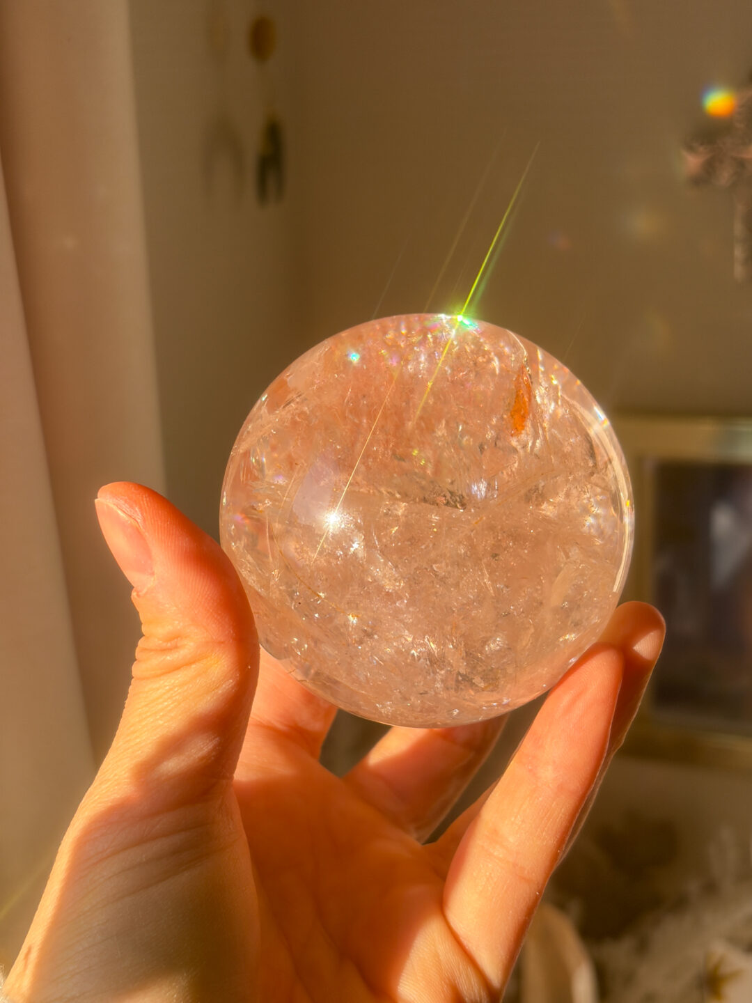非常に美しい透明感とピンクのポーすに、オーロラがくっきり入ったオンリーワンのスフィアです。