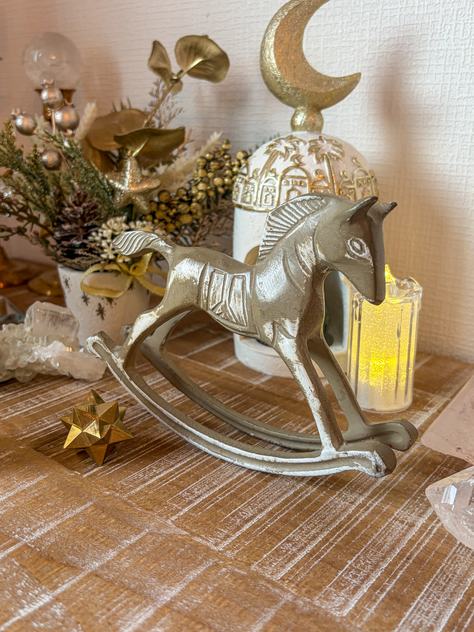 アメリカのヴィンテージショップにて買い付けた、ユニークな雰囲気を持つ鋳製(キャストメタル)のロッキングホースです。