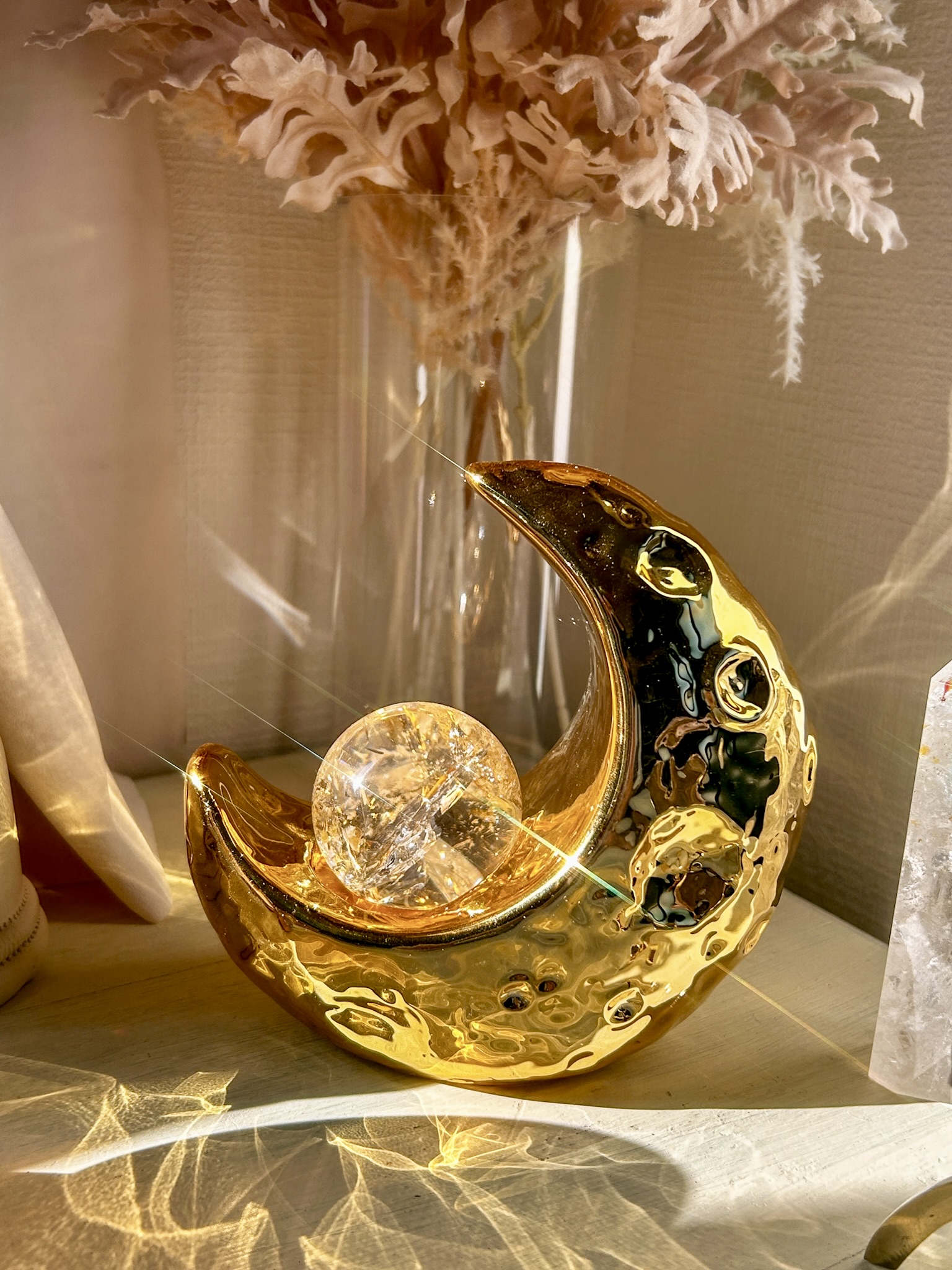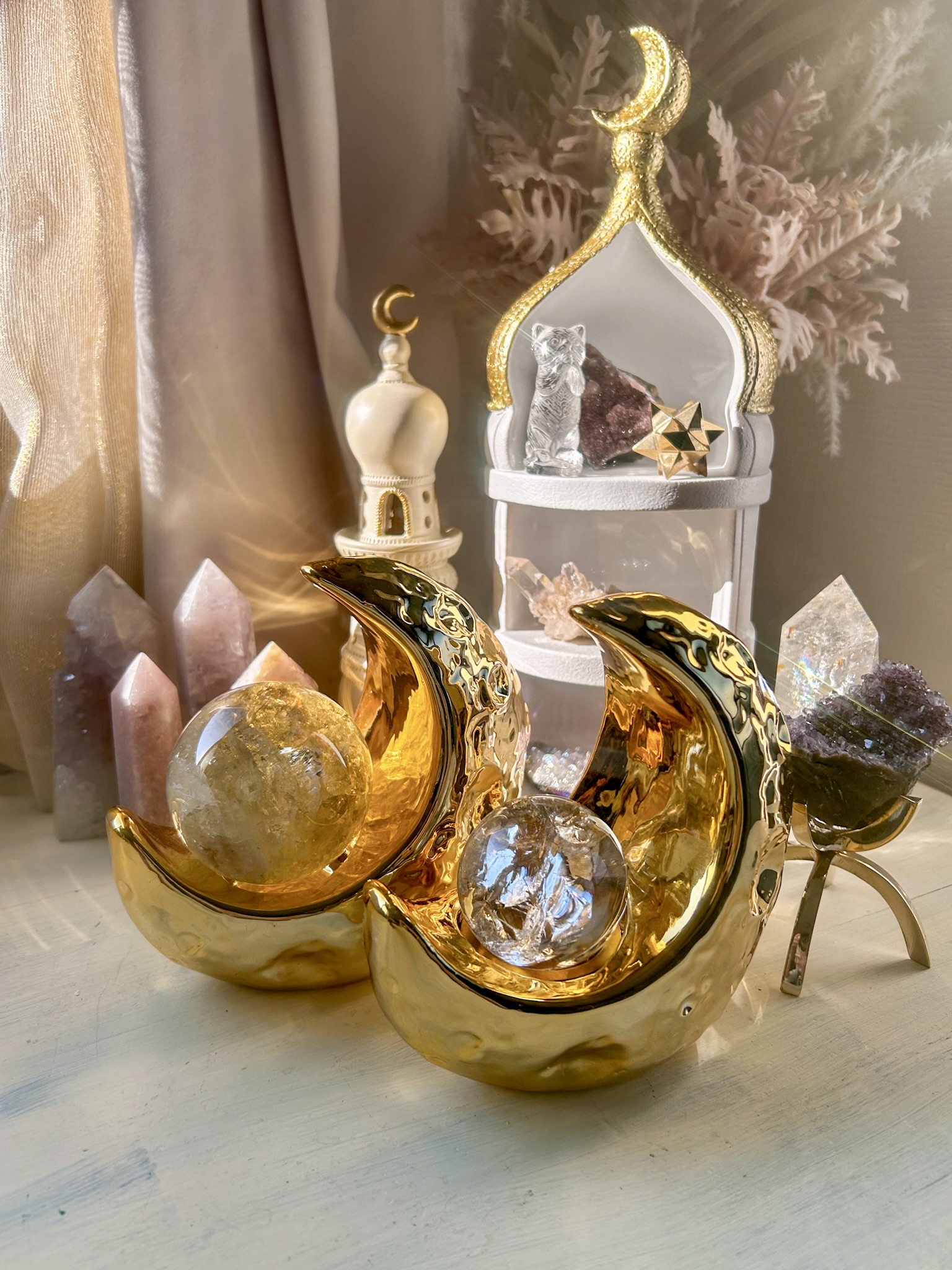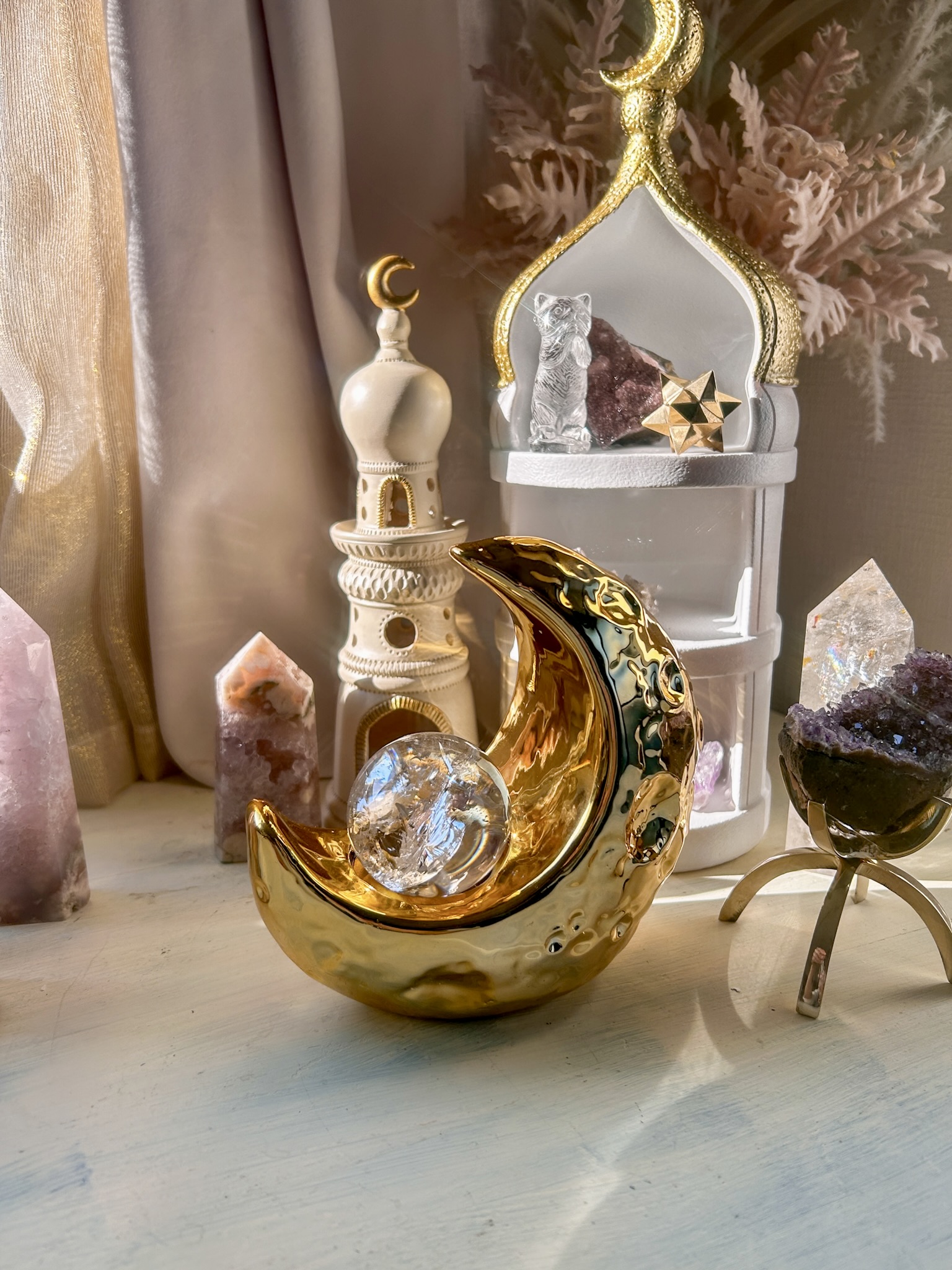 セラミックでできたムーンのキャンドルスタンド。香炉としても、スフィアやクリスタルを置くこともできます