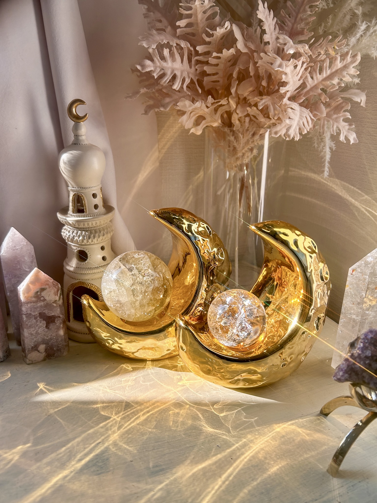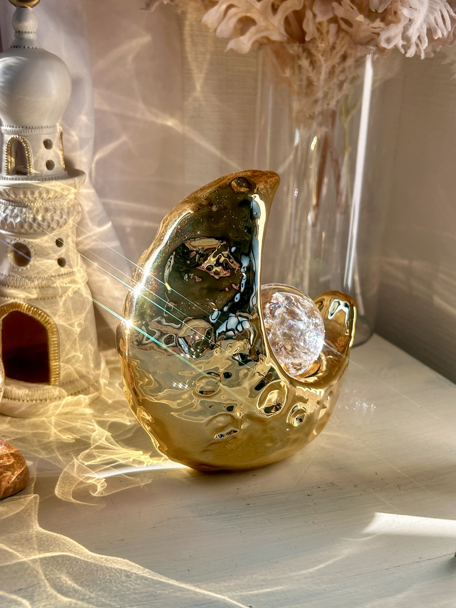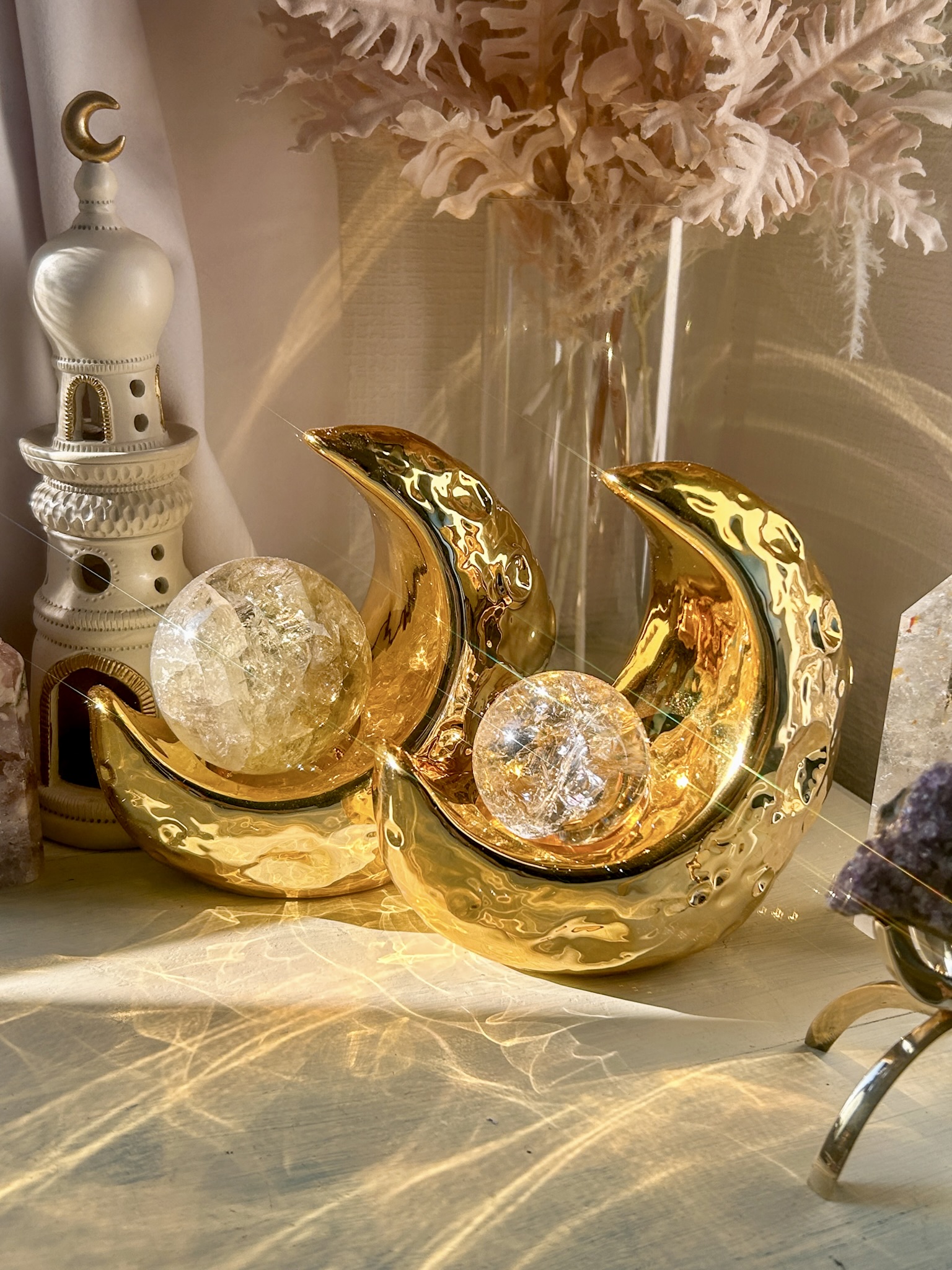 セラミックでできたムーンのキャンドルスタンド。香炉としても、スフィアやクリスタルを置くこともできます