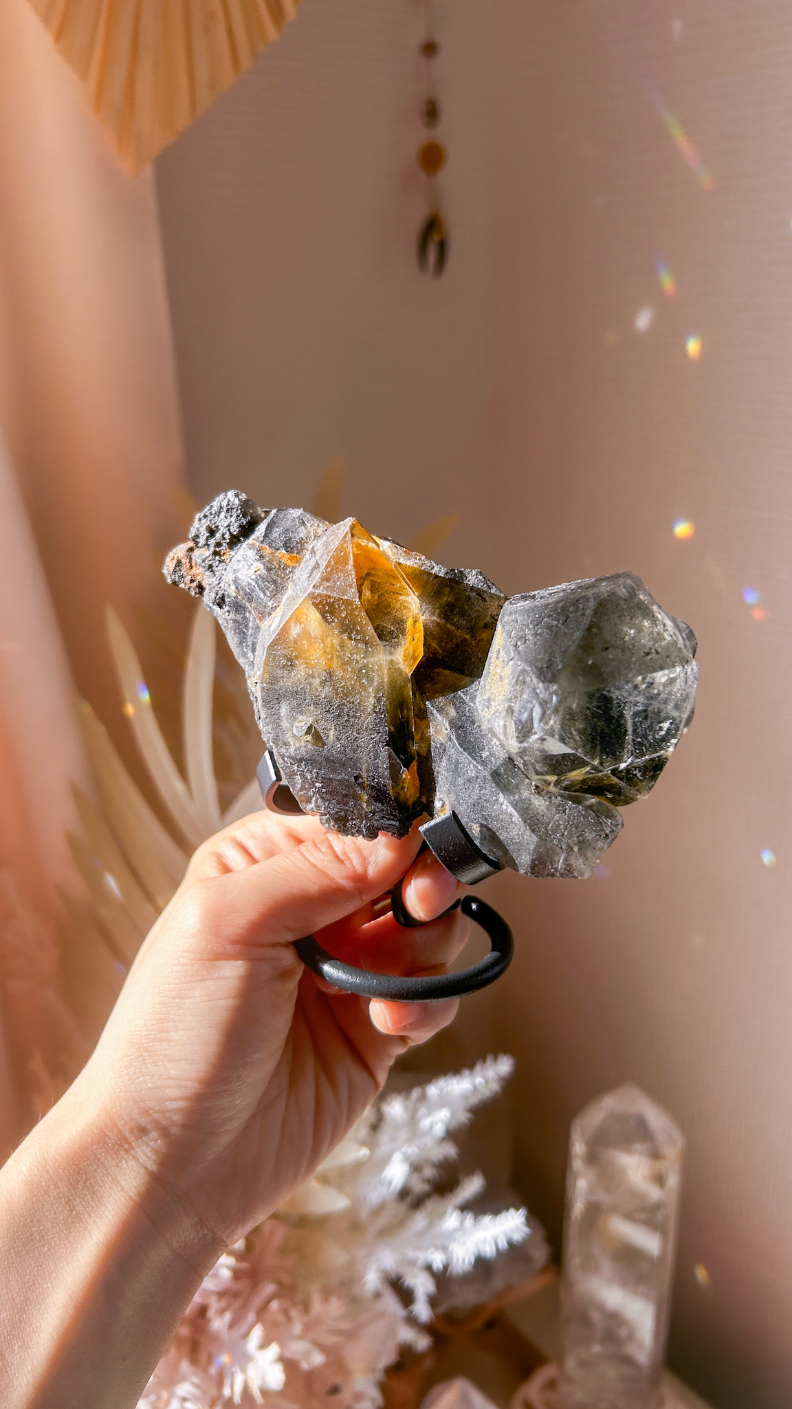 今回入荷したブラックマニハールという希少なクリスタルとも共通点を持ち、土壌に含まれるマイカがきらめきを生み出しています。現地の人々にとっても極めて珍しく、流通することがほとんどない貴重な石です。取引の交渉も簡単ではなく、ようやく迎えることができた奇跡のピース。