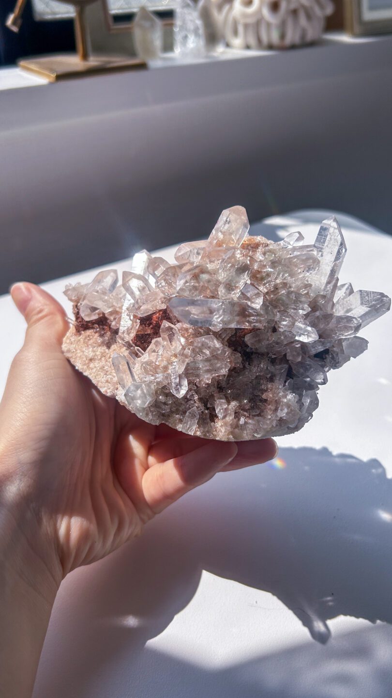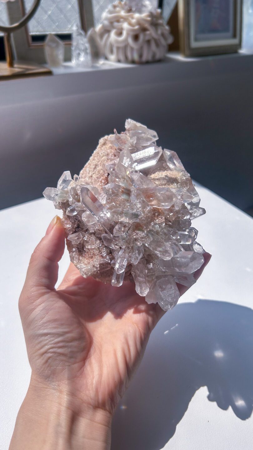 そんな場所で見つかる水晶はとっても美しく、マニカランにも似た、ピンク味や、赤味、青味もあったり、個性豊かで美しい水晶も。