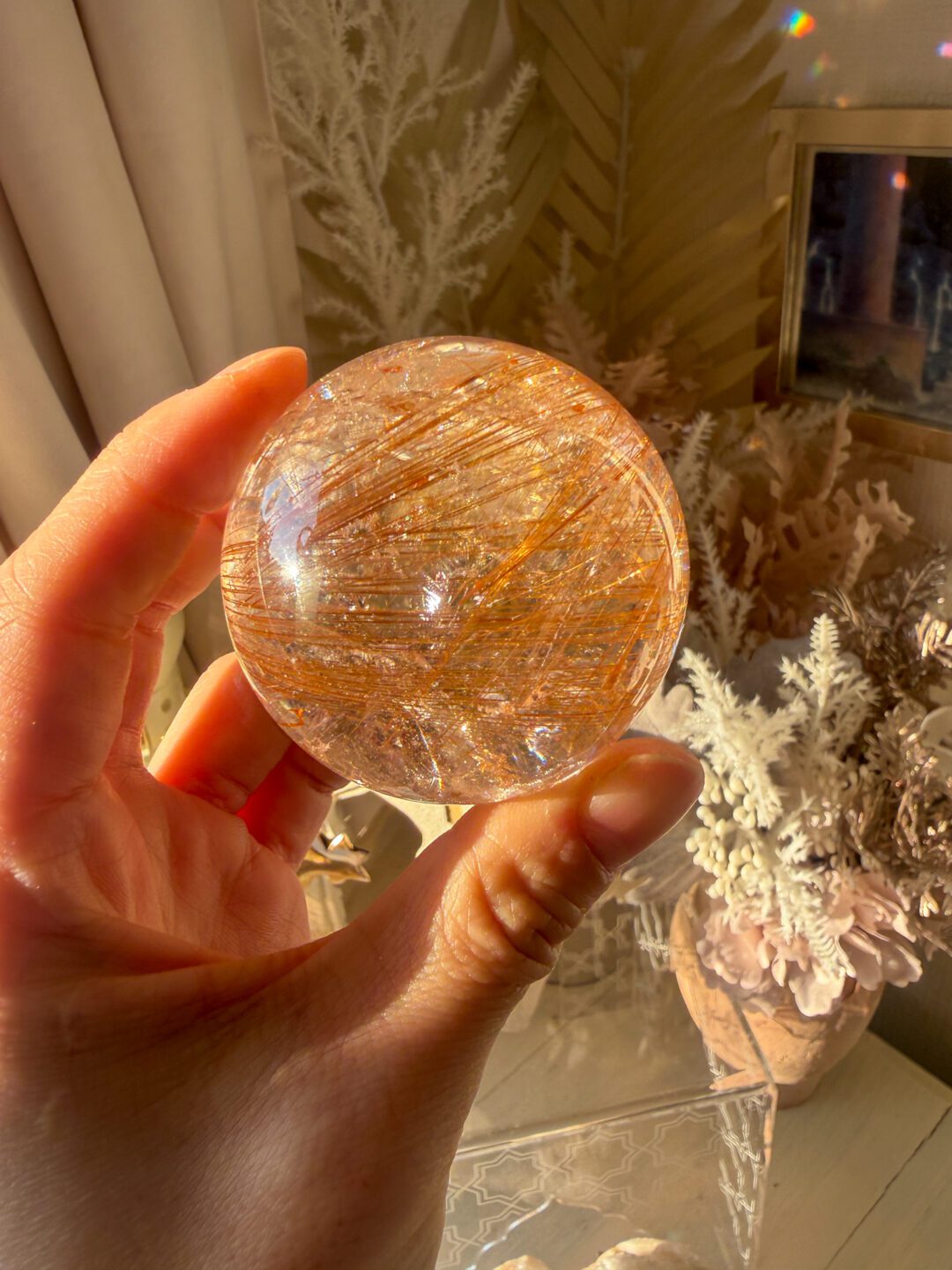 ライモナイトインルチルクォーツのスフィア。