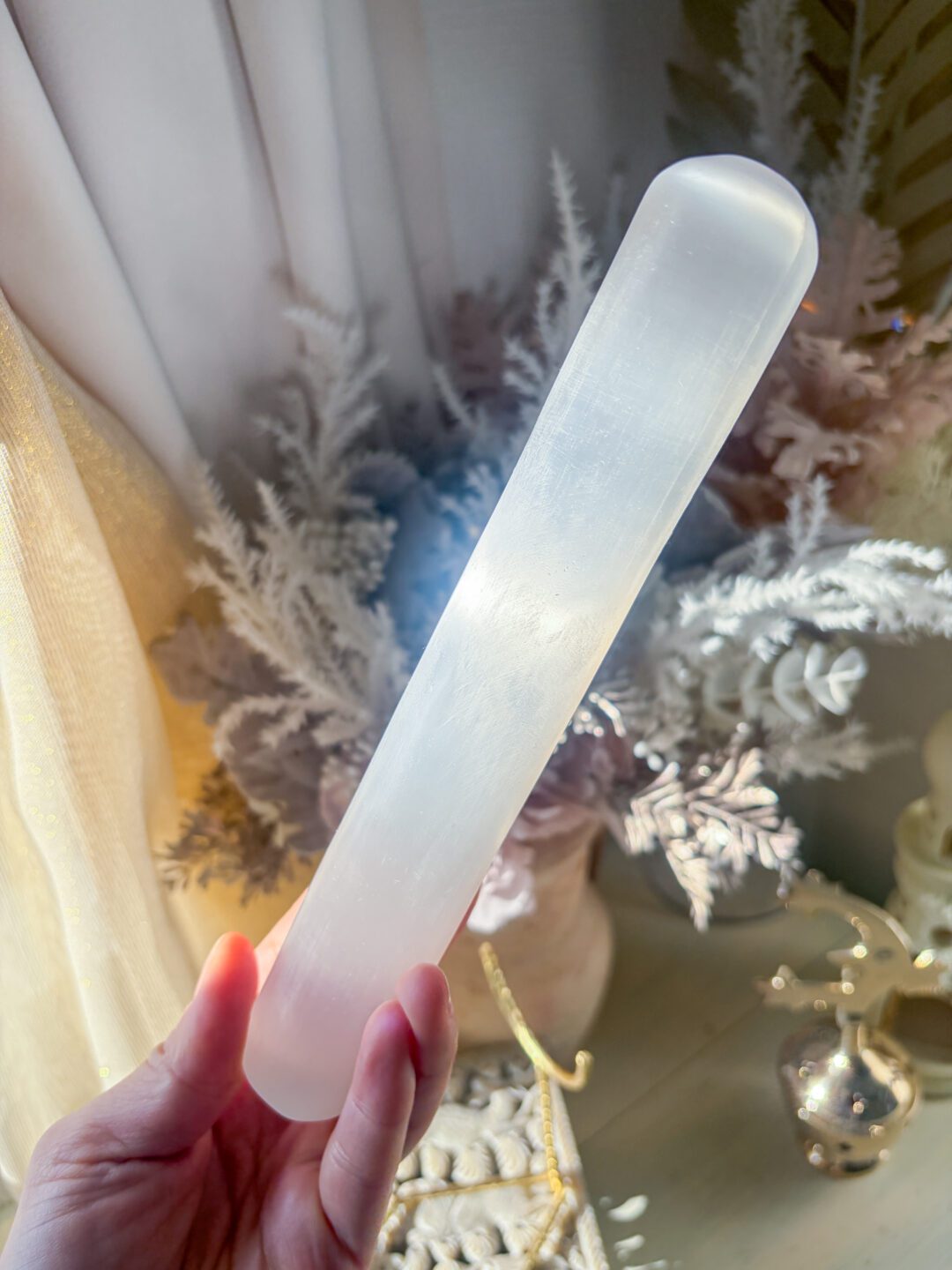 セレナイトは長さが19-20cmほど、直径3cmほど