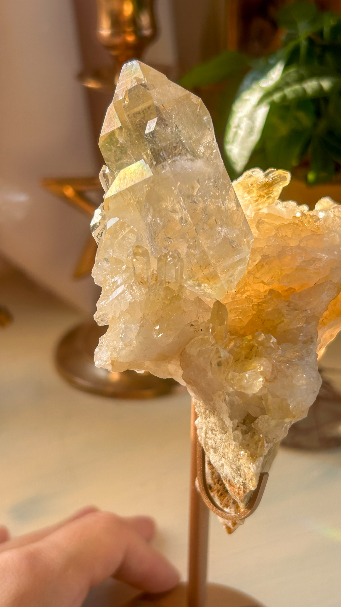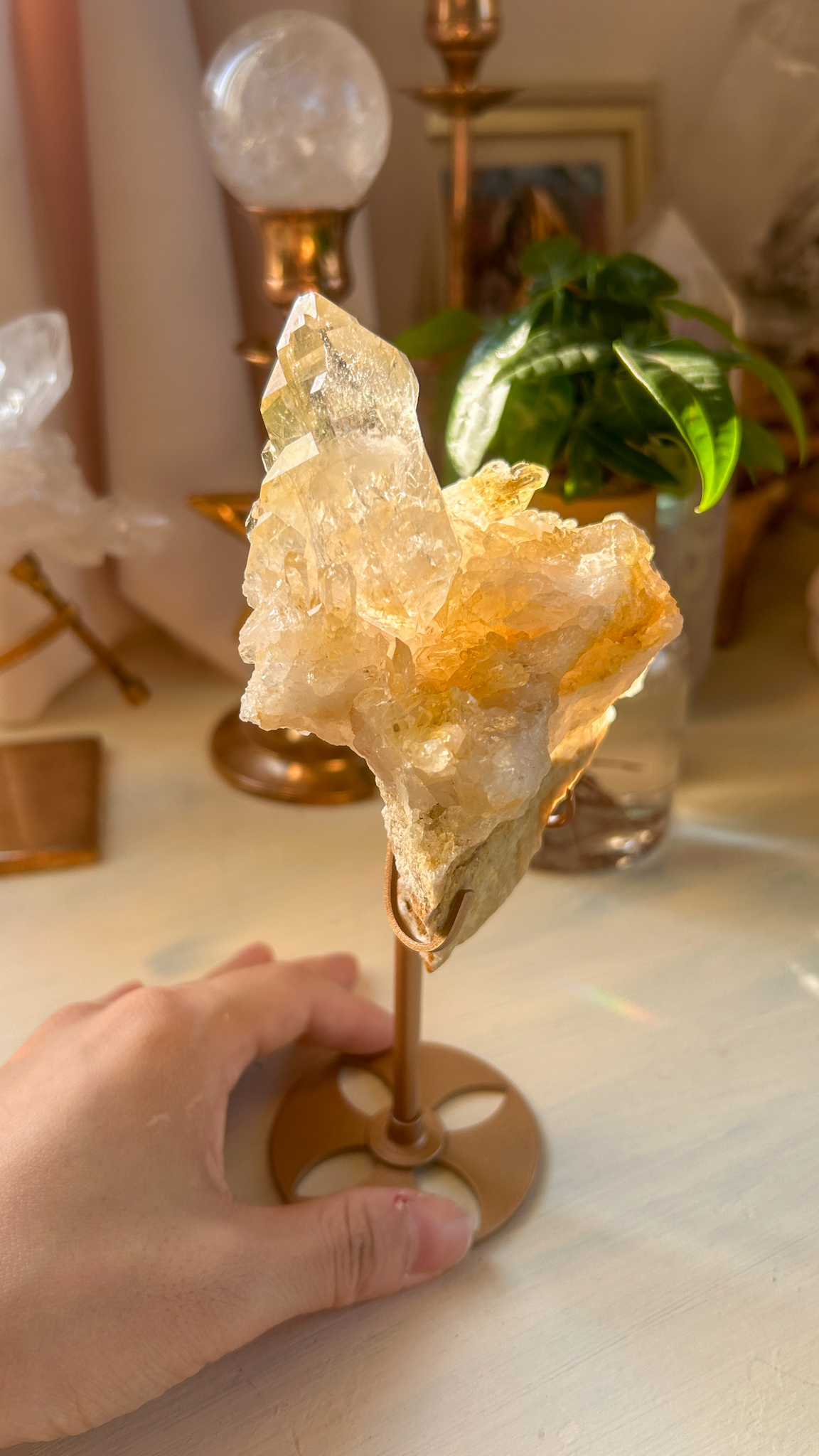 その美しい黄色味は、ヘマタイト由来の鉄分が水晶内部に含まれる、水晶にかぶさることで生まれた神秘です。
