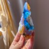 透明感ある温かなサーモンピンクをベースに、バブルの入った南国の海のような美しいブルーや、光を通すとオレンジ色に変わる乳白色の部分など、アンダラクリスタルのマジカルで美しい世界に感動しています✨✨